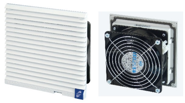 Ανεμιστήρας πίνακος 124x124mm με φίλτρο και περσίδα 148.5x148.5mm, 65-85m³/h, IP 54, RAL 7035
