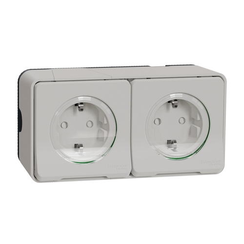 Mureva Styl Πρίζα Σούκο Ασφαλείας Διπλή Λευκή Πλήρης Προκαλωδιωμένη Επίτοιχη IP55