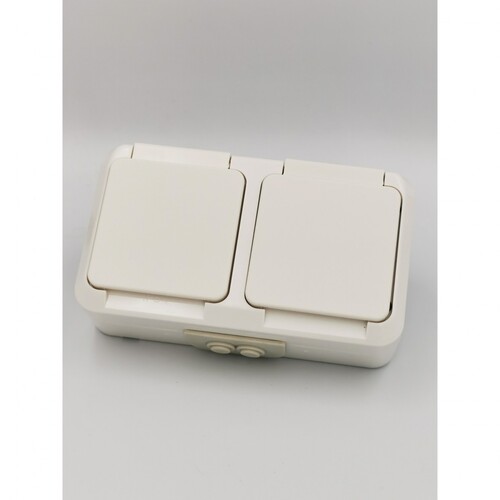 Πρίζα Σούκο Διπλή Ασφαλείας Επίτοιχη Στεγανή IP54 Λευκός AQUA