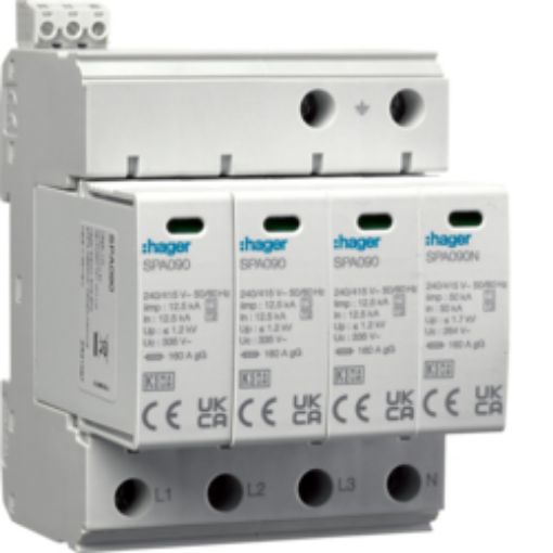 SPA931 Lightning Arrester T1+T2 3P+N 12.5kA TT-TNS with Auxiliary Contact